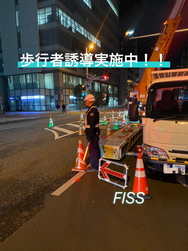 先日、福岡市中央区天神にて、クレーン作業を伴う看板工事のため、大規模な交通規制を行いました。